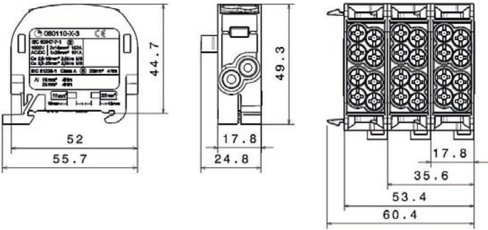 Prąd znamionowy Cu152 A (2 x 16 mm²) / 101 A (1 x 25 mm²)