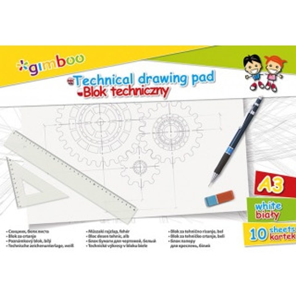 * jednostka sprzedaży: 1 szt. * blok techniczny * klejony po krótkim boku * gładki * format: A3 * ilość kartek: 10 * gramatura: 150gsm * kolor: biały