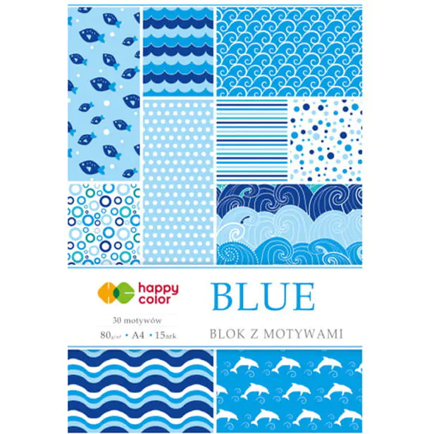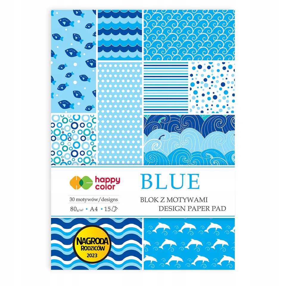 Blok dekoracyjny z motywami BLUE A4 15 arkuszy HAPPY COLOR