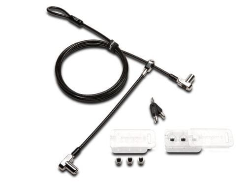 - Podwójne zamki umożliwiają zablokowanie dwóch urządzeń za pomocą jednego rozwiązania. Idealny do zabezpieczania wielu urządzeń, takich jak laptop, monitor lub stacja dokująca. Ułatwia zarządzanie kablami i kluczami oraz zmniejsza bałagan w kablach.