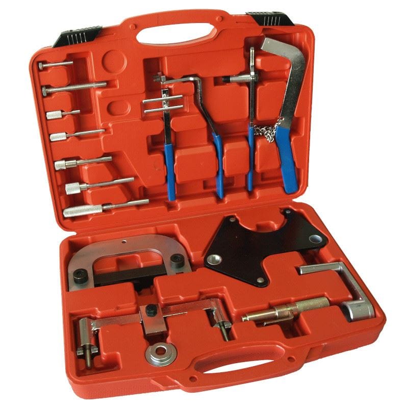 Zestaw blokad kół rozrządu i wału korbowego w samochodach marki Renault. Zestaw zapakowany wygodną walizkę.