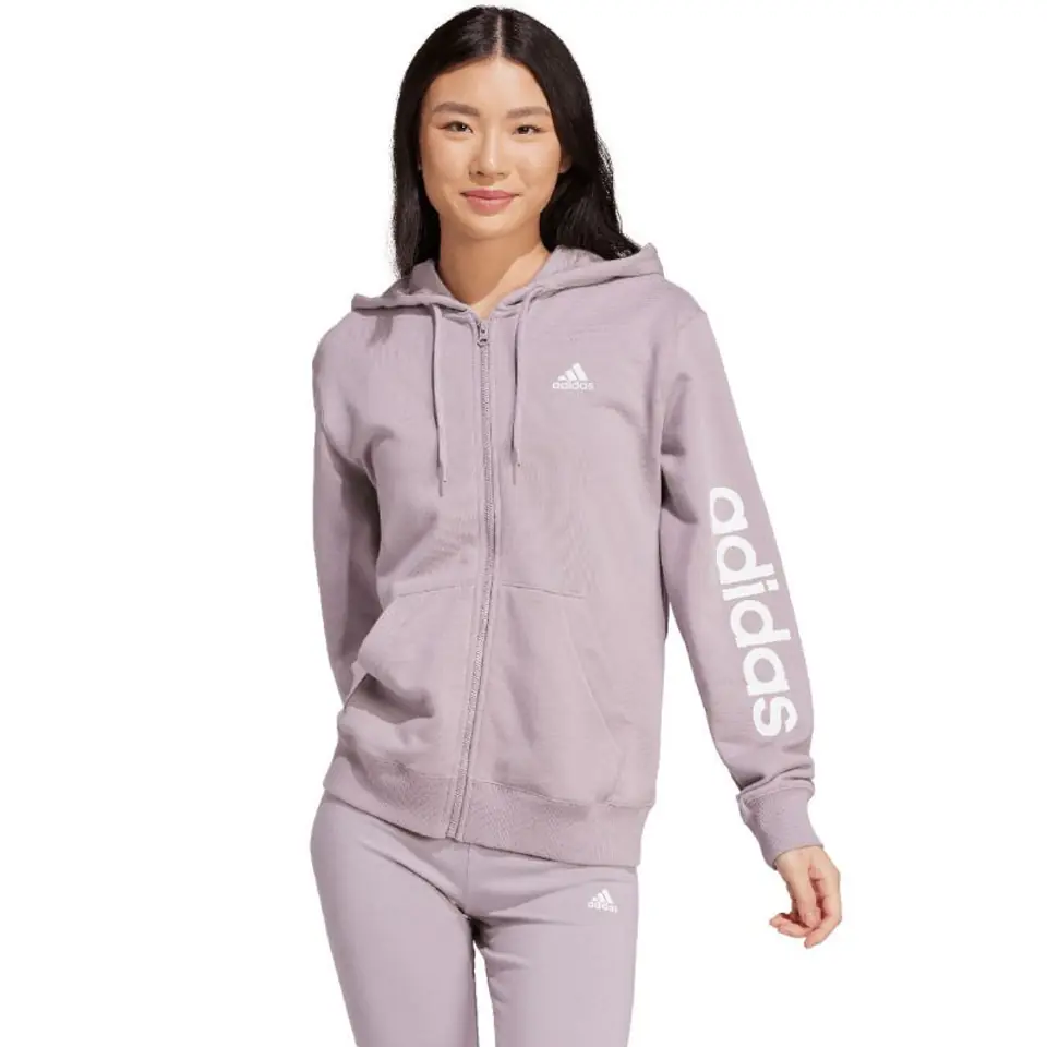 Bluza damska adidas Essentials Linear Full-Zip French Terry Hoodie fioletowa IS2073