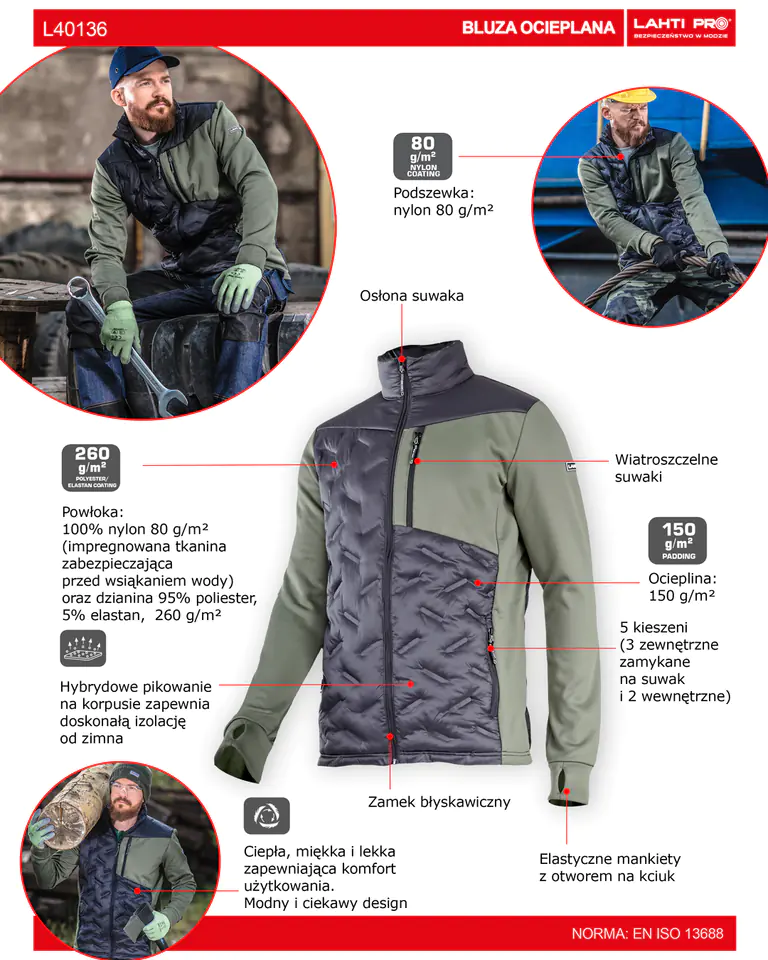 - Hybrydowe pikowanie na korpusie zapewnia doskonałą izolację od zimn
