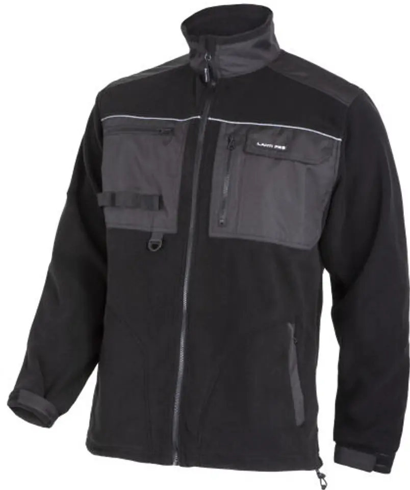 MATERIAŁ: Polar 100% poliester 420 g/m?, krótko strzyżony, dwustronnie szczotkowany i niemechacący się. Wstawki: Oxford 600D 100% poliester 180 g/m?. 5 kieszeni, w tym 4 zamykane na suwak. Zamek błyskawiczny. Osłona suwaka. Odblaskowe elementy. Oczko na klucze. 3 szlufki na akcesoria. Rękawy z regulacją na rzep. Regulacja szerokości u dołu bluzy za pomocą specjalnego ściągacza. Wzmocnione rękawy, karczek, kołnierz oraz kieszenie materiałem odpornym na przetarcia. NORMA: EN ISO 13688.