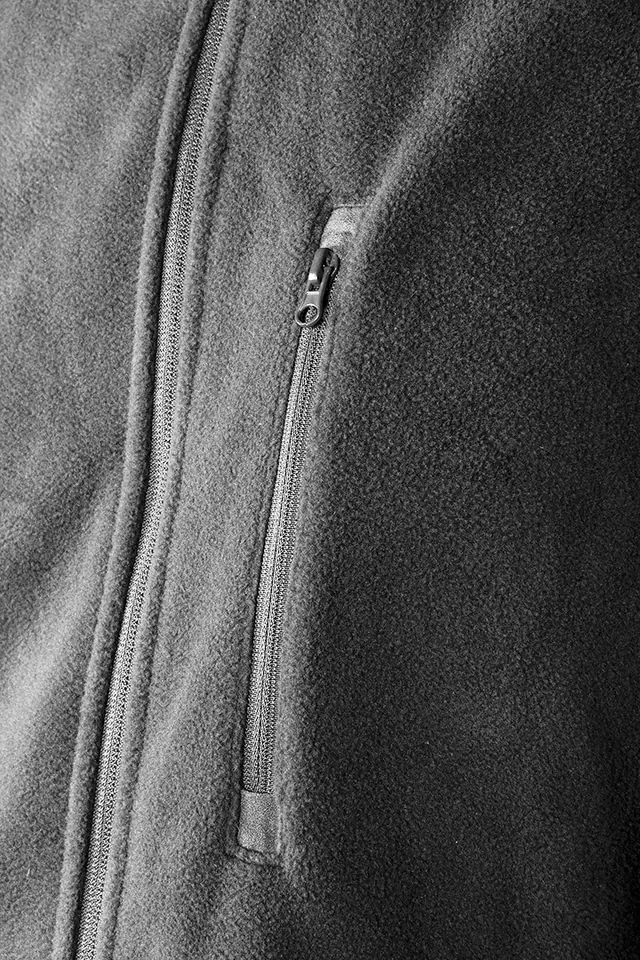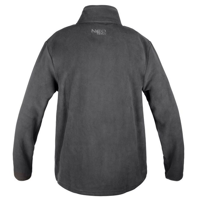 Bluza polarowa, grafitowa, rozmiar L, skład materiałowy: 100% poliester, gramatura: 300 g/m2, 3 kieszenie zapinane na suwak, regulowany ściągacz w pasie, haftowane logo na plecach, wszywka identyfikacyjna, certyfikat CE