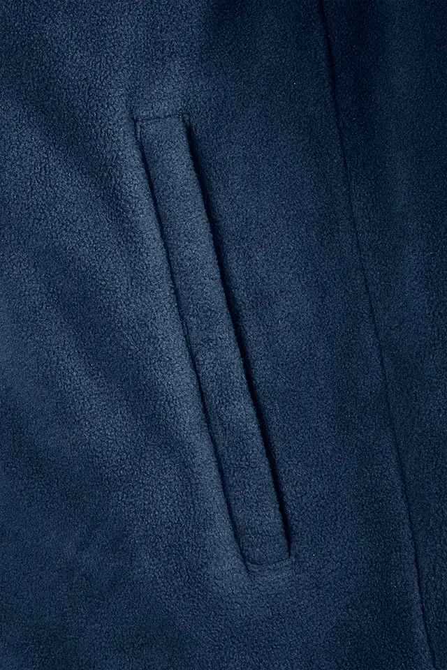 Bluza polarowa, granatowa, rozmiar XXL, skład materiałowy: 100% poliester, gramatura: 300 g/m2, 3 kieszenie zapinane na suwak, regulowany ściągacz w pasie, haftowane logo na plecach, wszywka identyfikacyjna, certyfikat CE