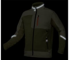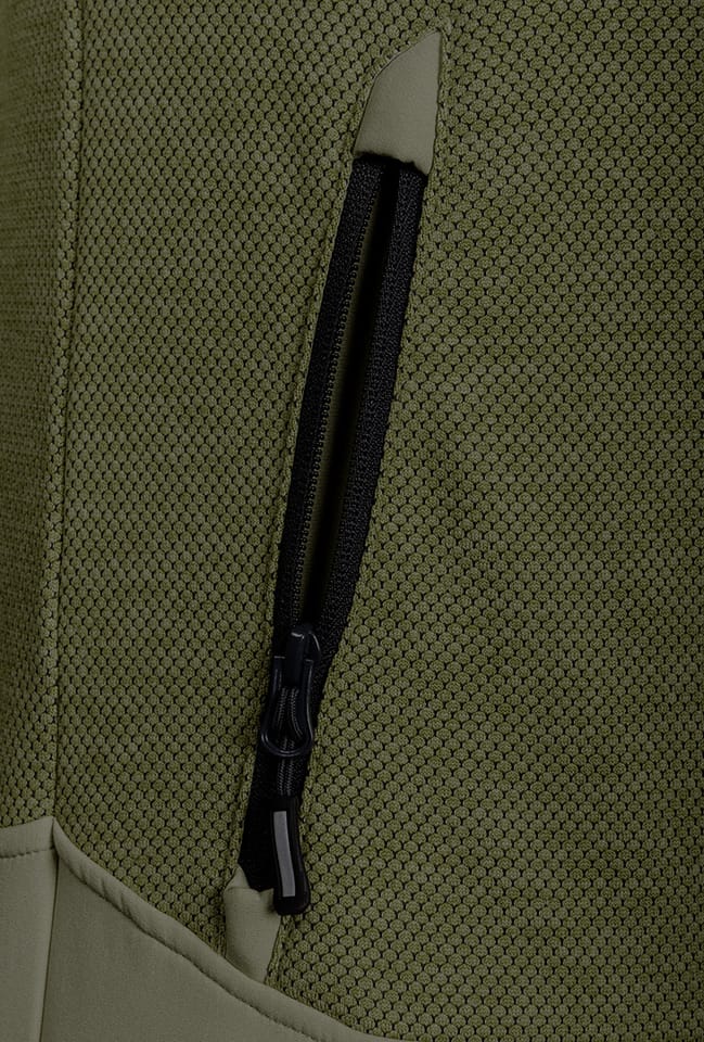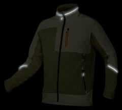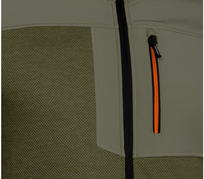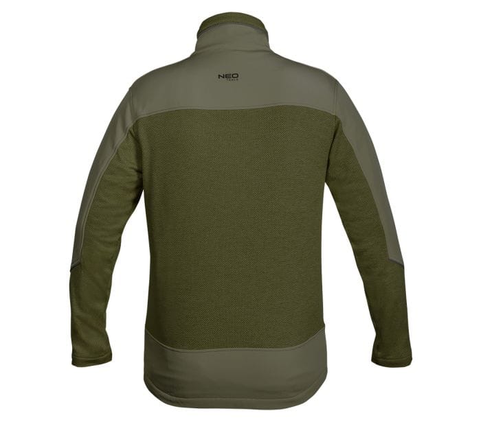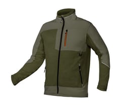 Bluza robocza OUTDOOR dzianinowa o splocie "rybiej łuski" ze wstawkami z dzianiny softshell, zapinana na zamek, kolor oliwkowo zielony, skład materiałowy 100% poliester, gramatura 265g/m2, wstawki z softhsella na rąbkach, stójce, rękawach, kieszeni i dole bluzy, kieszeń piersiowa zapinana na zamek, kieszenie boczne zapinane na zamek, zaczep na narzędzia, drukowane logo na karku, wszywka imienna, opakowanie torba foliowa z recyklingu, Certyfikat CE, rozmiar XXL