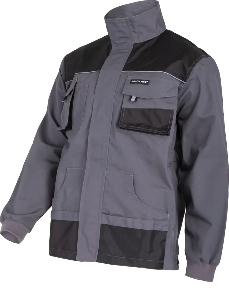 MATERIAŁ: 35% bawełna, 65% poliester. Wytrzymała tkanina typu CANVAS. 7 kieszeni, w tym 4 zapinane na rzep. Kieszeń na telefon komórkowy. Zamek błyskawiczny. Otwory wentylacyjne z siatką zamykane na suwak. Odblaskowe elementy. Wzmocnione rękawy, karczek i kieszenie materiałem (600D poliester) odpornym na przetarcia. Rękawy zakończone ściągaczem. Regulacja szerokości u dołu bluzy za pomocą guzików. Wszywka identyfikacyjna. NORMA: EN ISO 13688