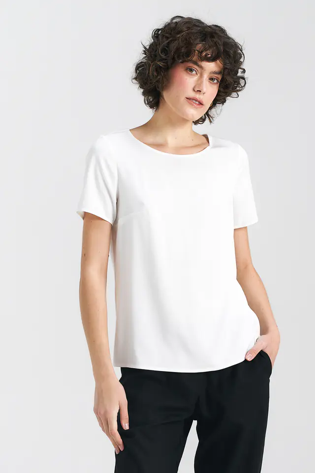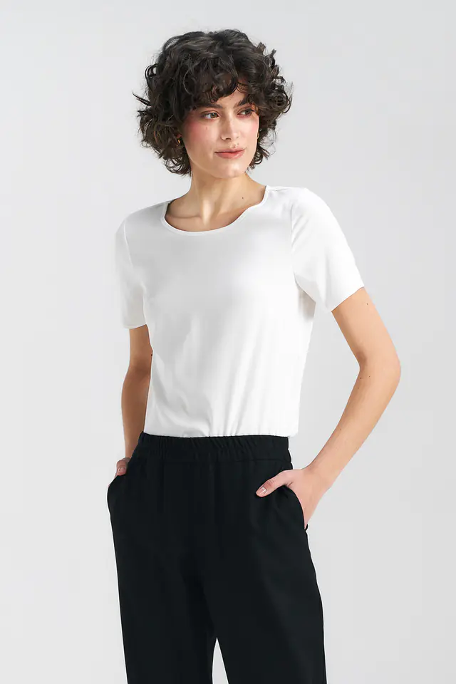 Bluzka basic z krótkim rękawem - ecru - B160 kolor ecru, rozmiar 36