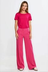 Bluzka basic z krótkim rękawem - fuksja - B215 kolor fuksja, rozmiar 40