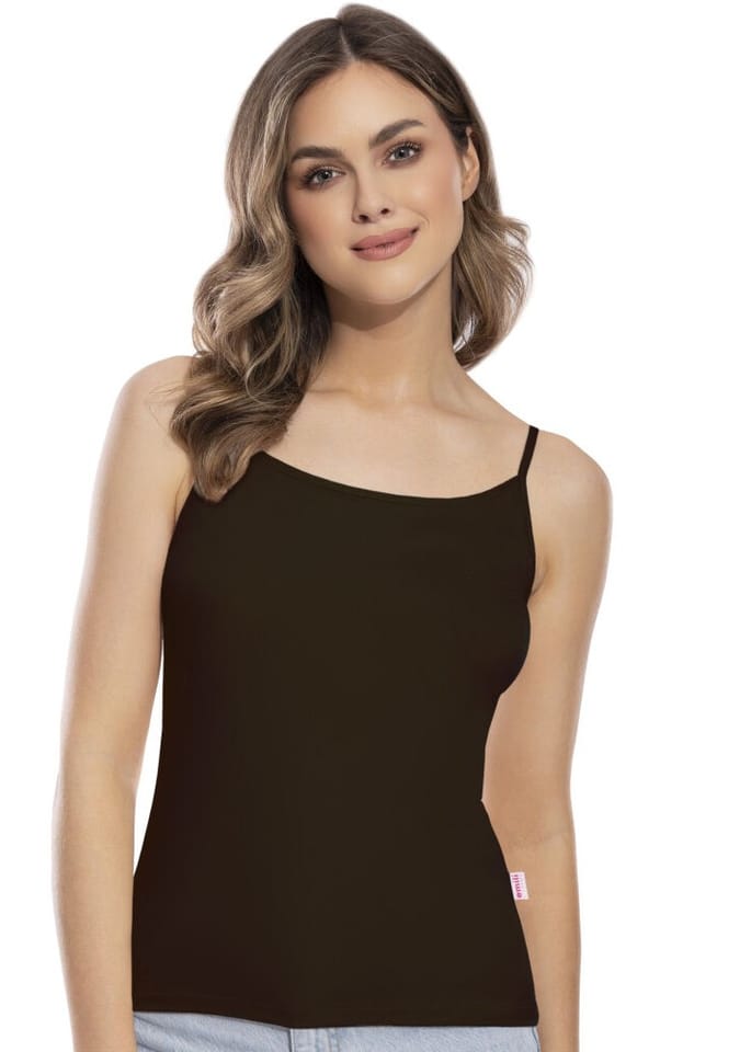 Koszulka damska na wąskim ramiączku, gładka. Delikatne ramiączka oraz subtelny krój sprawiają, że doskonale dopasowuje się do sylwetki, podkreślając jej atuty. Skład: 95% wiskoza, 5% elastan.