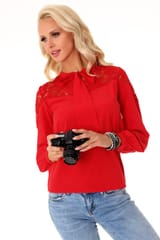 Bluzka Maurinea w kolorze czerwonym z koronkowymi wstawkami dostępna jest w dwóch rozmiarach: S/M, L/XL. Skład materiałowy to; 95% POLYESTER 5% ELASTANE