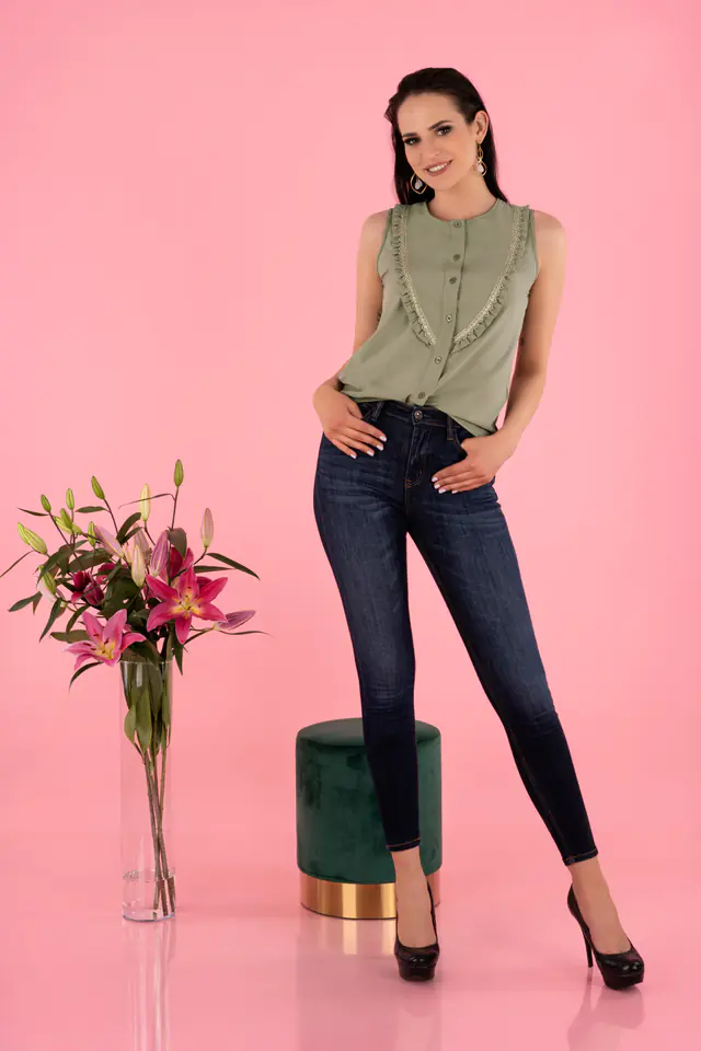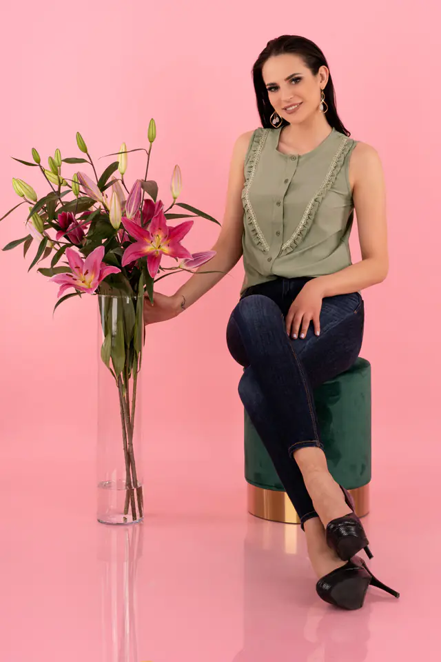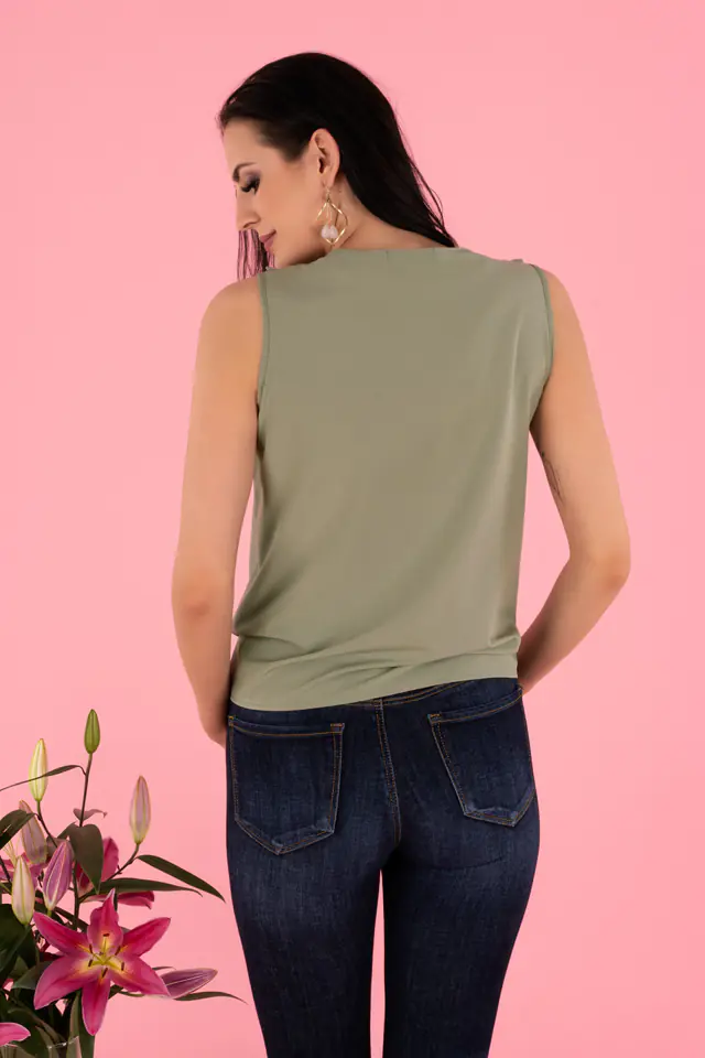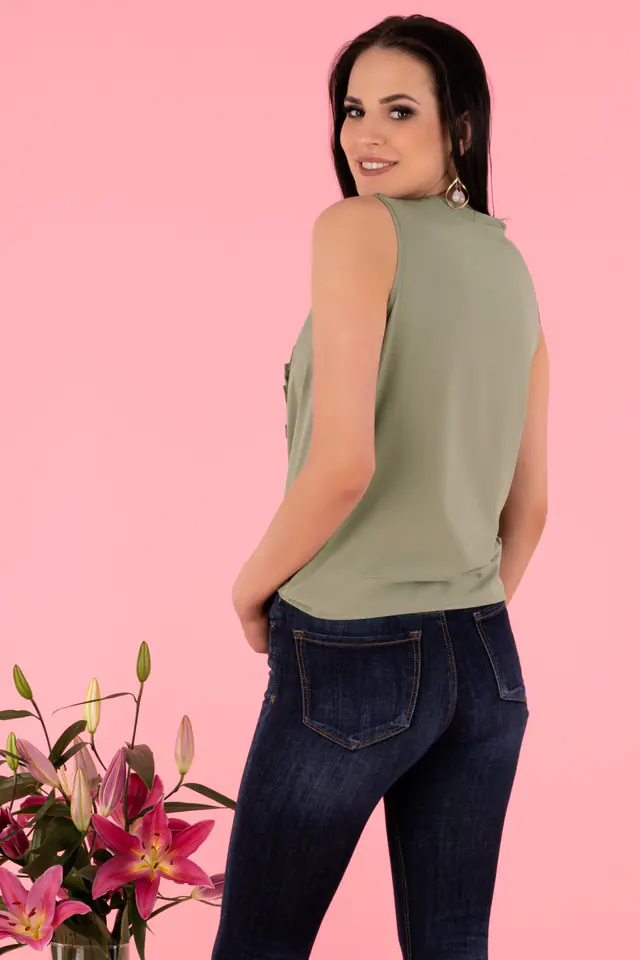 Bluzka Nenaria w kolorze khaki, dostępna jest w czterech rozmiarach S, M, L, XL. Skład materiałowy to 95% POLYESTER 5% ELASTANE