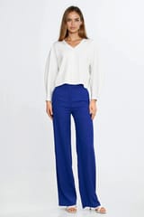 Krój oversize. Materiał z dodatkiem wiskozy. Dekolt serek. Rękaw długi. Połączenie dwóch typów rękawa: balonowy i nietoperz. Krótsza długość. Na przodzie, pośrodku przeszycie. Wkładana przez głowę. Skład: 45% wiskoza, 38% poliester, 12% nylon, 5% spandex Modelka na zdjęciu ma 176 cm wzrostu i ma sobie rozmiar 36.