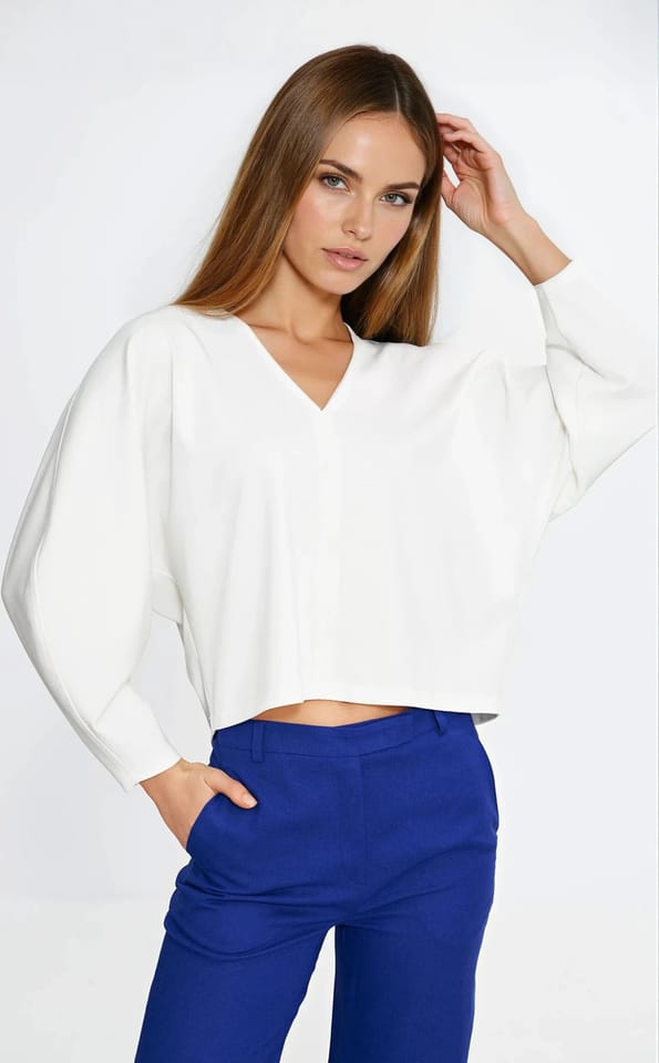 Bluzka oversize z balonowymi rękawami - ecru - B214 kolor ecru, rozmiar 36/38