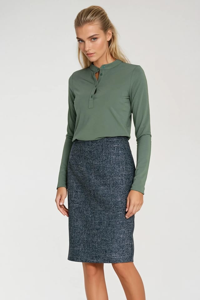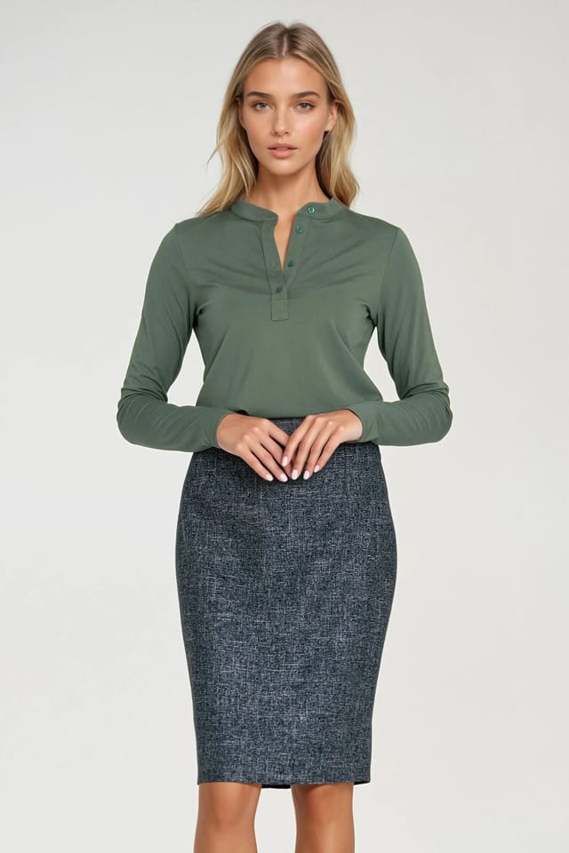 Bluzka polo ze stójką - oliwka - B195 kolor oliwka, rozmiar 38