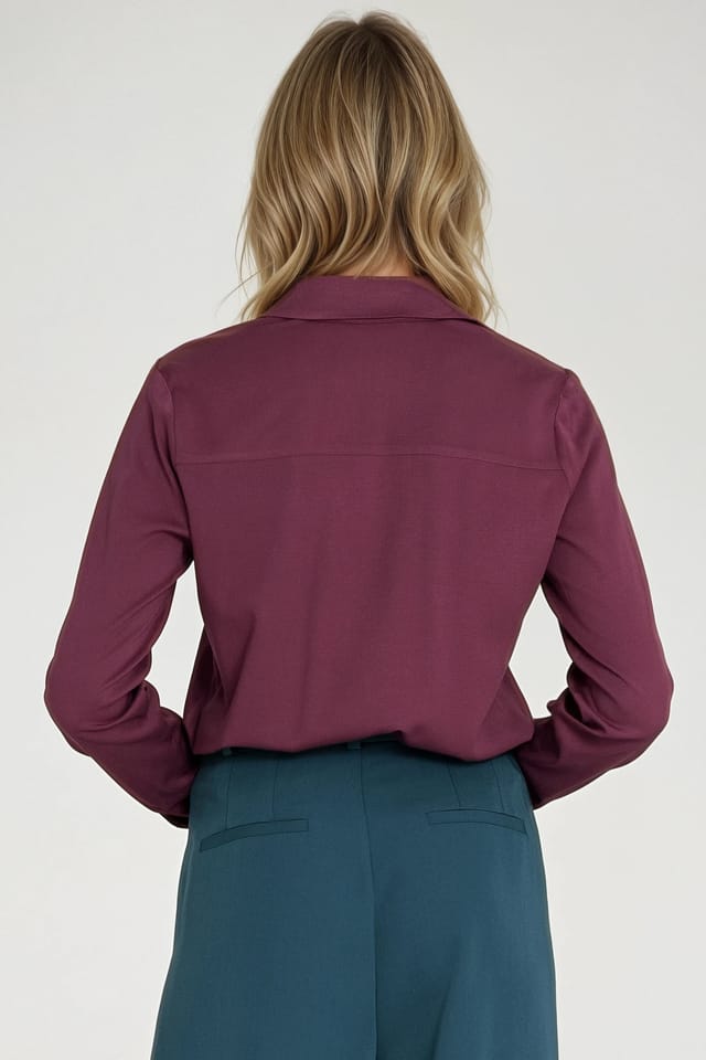 Bluzka z krytą plisą - śliwka - B205 kolor śliwkowy, rozmiar 40
