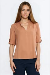 Bluzka z podwijanym rękawem - karmel - B212 kolor karmel, rozmiar 36