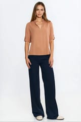 Bluzka z podwijanym rękawem - karmel - B212 kolor karmel, rozmiar 40
