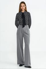 Bluzka z szafrą pod szyją- wzór koralik - czarny - B211 kolor czarny, rozmiar 36