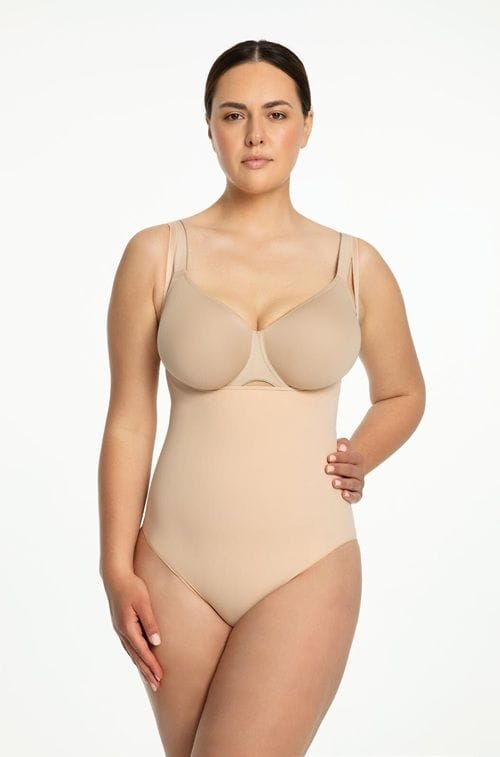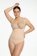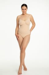 Bezszwowe body, które wysmukla brzuch, modeluje talię i podkreśla kobiecą sylwetkę. Konstrukcja „open bust” pozwalając łączyć ze sobą różne fasony staników. Skład: 80% poliamid, 20% elastan.