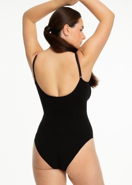 Body wyszczuplające bezszwowe uszyte w technologi SEAMLESS – brak szwów daje pełną dyskrecję pod ubraniem. Specjalnie uformowana część biustonosza unosi i podkreśla piersi. Specjalny materiał wysmukla brzuch i modeluje tali. Skład:80% poliamid,20% elastan