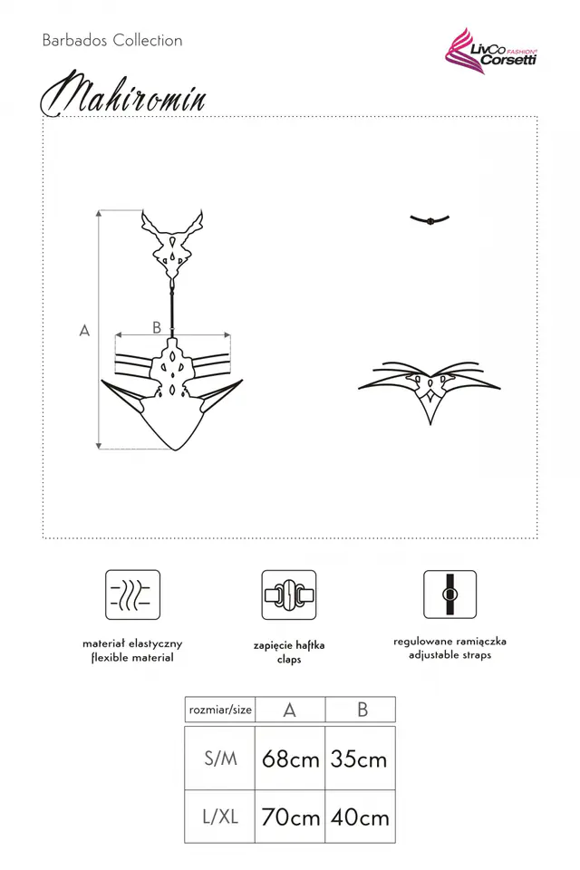 Body Mahiromin Black Czarny LC 90574 Barbados Collection LivCo Corsetti Fashion rozmiar - S/M