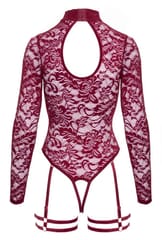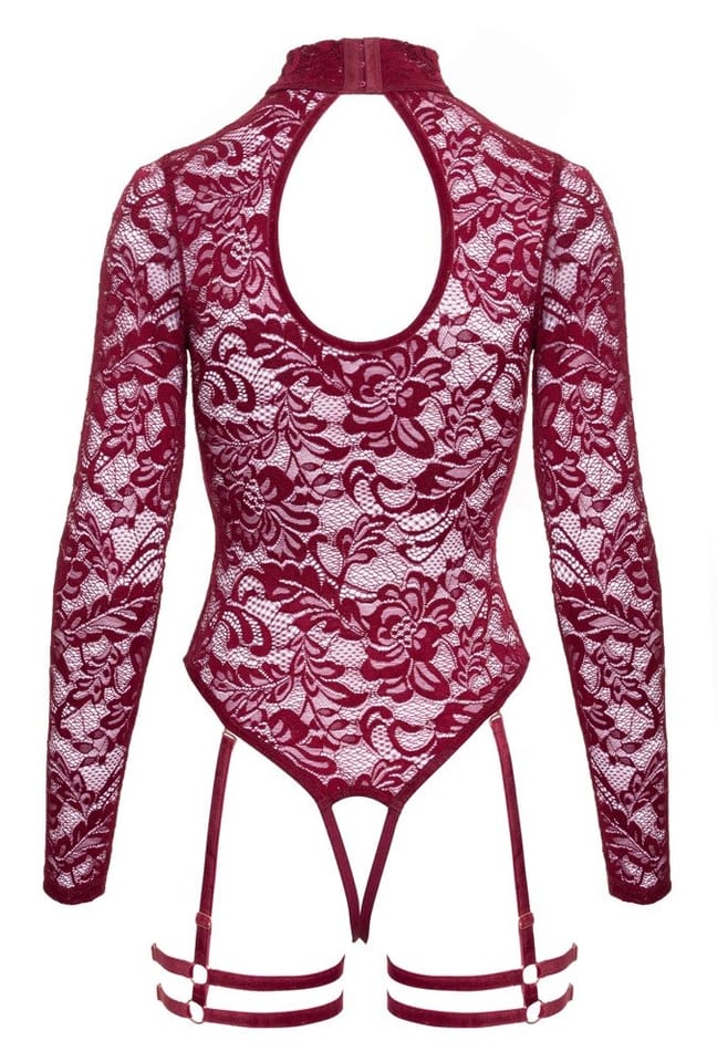 Eleganckie body damskie Abierta Fina open cup burgund z koronką i odpinanymi łańcuszkamiNajważniejsze cechy produktu: