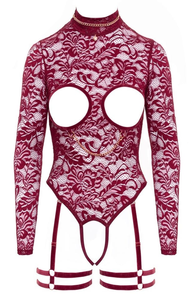 Abierta Fina Body z Odsłoniętymi Miseczkami Bordowy M – Luksusowa Koronka i AksamitCechy produktu: