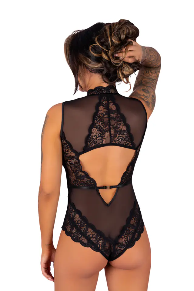 Model Sagen to body uszyte z miękkiego, elastycznego materiału, odpornego na rozciąganie. Koronka i siateczka z poliamidu z domieszką elastanu świetnie dopasowują się do kształtów ciała i nie krępują ruchów. Czarny kolor modelu jest uniwersalny i klasycznie elegancki- odpowiedni na każdą okazję. Transparentne body sprawdzi się w sypialni, a dzięki niezwykle kunsztownym koronkowym aplikacjom pozwoli czuć się kobieco i szykownie nawet bez żadnego okrycia wierzchniego.