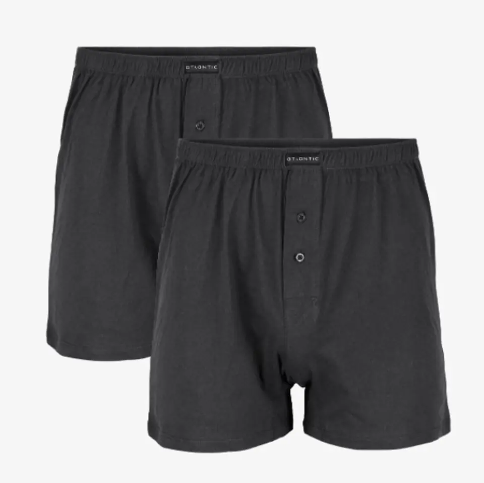 Klasyczne luźne bokserki o standardowej wysokości talii i długiej nogawce, posiadają rozporek na dwa guziczki oraz szeroką nieuciskającą gumkę w pasie. Wykonane z miękkiej dzianiny bawełnianej (100%). Pakowane po 2 sztuki.