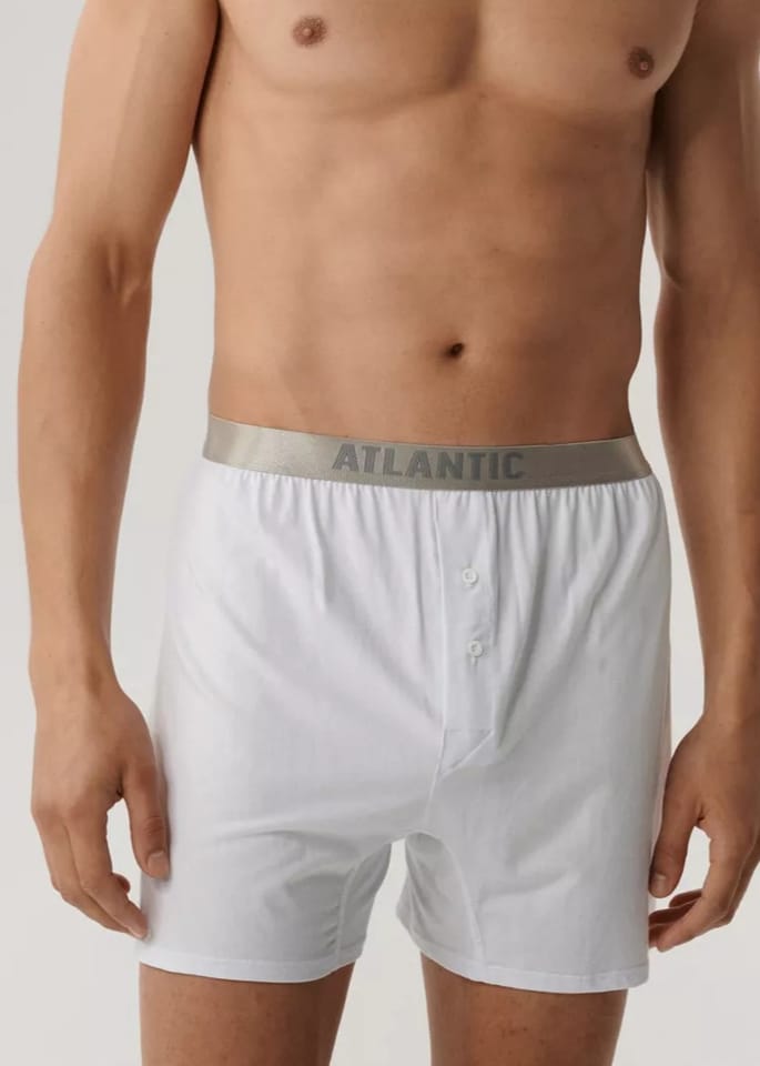 Bokserki z jedwabistego modalu tzw. „najlepszej bawełny na świecie” posiadają standardowej długości nogawki oraz średniej wysokości stan, z nieuciskającą ciała gumą z napisem Atlantic. W opakowaniu 2 szt. Skład: 47% modal, 46% bawełna pima, 7% elastan.