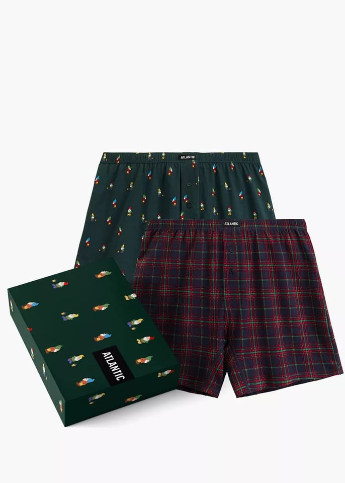 Dwie pary luźnych bokserek o uniwersalnej wysokości talii, wykończonej miękką, elastyczną i nieuciskającą ciała gumą zewnętrzną. Idealne na prezent. Uszyte z przyjemnej w dotyku, przewiewnej i przyjaznej dla skóry bawełny. Skład:100% bawełna.