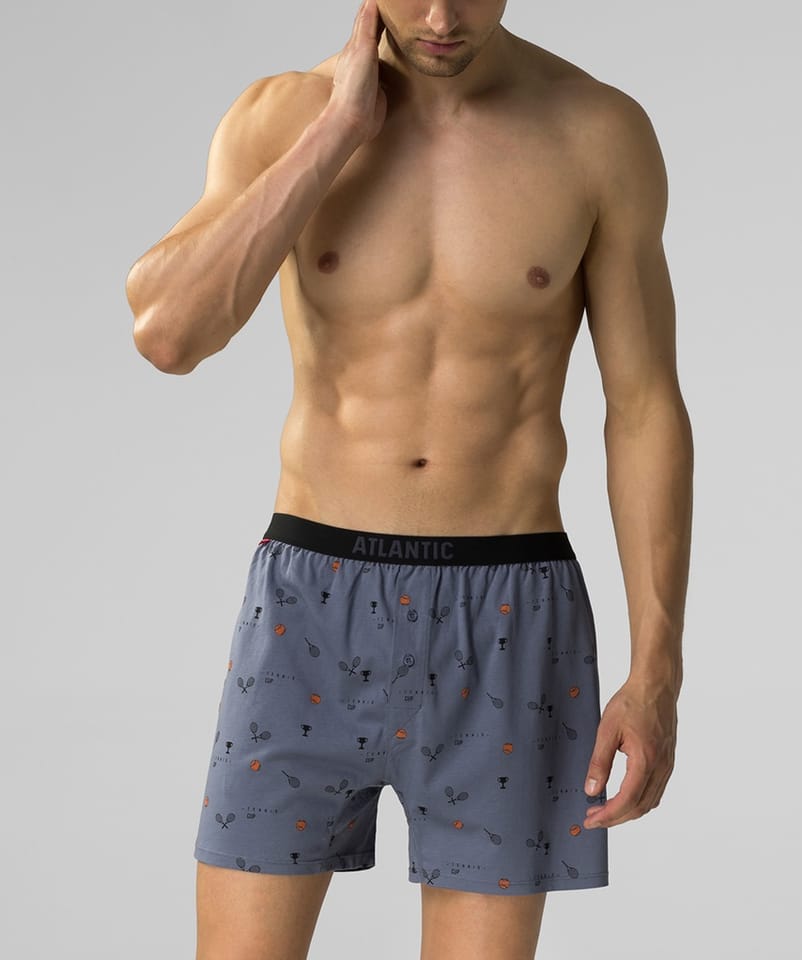 W 2-packu znajdują się luźne bokserki męskie z motywem tenisowym. Odznaczają się standardowej wysokości stanem oraz nogawkami uniwersalnej długości. W talii guma zewnętrzna z logo Atlantic. Skład: 100% bawełna.