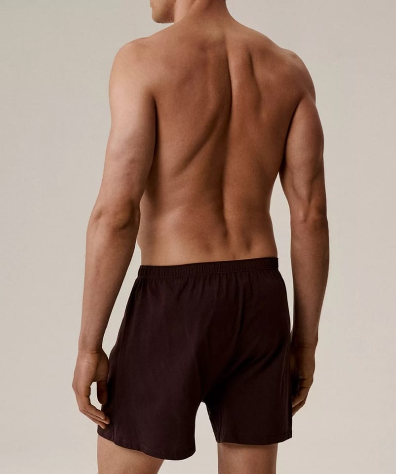 Bokserki ze średniej wysokości stanem i standardowej długości nogawkami, wykończone są w pasie miękką i nieuciskającą gumą wewnętrzną. Przyjemna w dotyku bawełna. W opakowaniu 2 szt. Skład:100% bawełna.