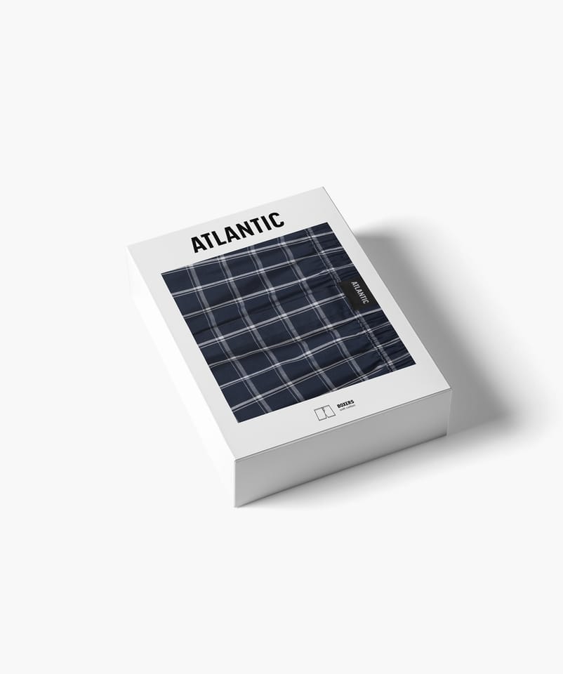 Bokserki męskie o luźnym kroju z nogawkami o klasycznej długości oraz talią wykończoną miękką nieuciskającą gumą wewnętrzmą ozdobioną logo Atlantic. Skład:100%.
