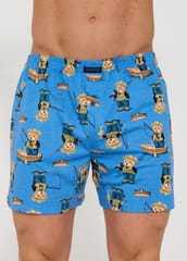 Luźne bokserki męskie posiadają dłuższe nogawki (często do połowy uda) oraz rozporek zapinany na guziki. Zapewniają dużą swobodę ruchów i przewiewność. Wzorzyste- ozdobione zabawnym motywem w misie. Skład: 100% z bawełny.