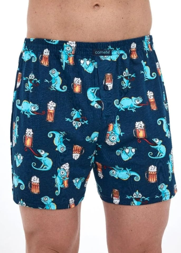 Bokserki męskie o luźnym fasonie ozdobione zabawnym nadrukiem. Wygodna guma w pasie obszyta bawełną. Rozporek zapinany na guzik. Idealne na prezent. Skład: 100% bawełna.