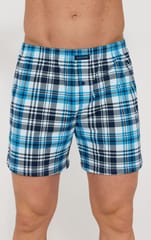 Bokserki męskie o luźnym fasonie dającym pełną swobodę ruchów z miękkiej w dotyku, delikatnej dla skóry i przewiewnej bawełny w kratę. Wygodna guma w pasie obszyta bawełną, rozporek zapinany na guzik. Skład: 100% bawełna.