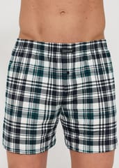 Bokserki męskie o luźnym fasonie dającym pełną swobodę ruchów. Wzór w elegancką w kratę. Wygodna guma w pasie obszyta bawełną, rozporek zapinany na guzik. Skład: 100% bawełna.