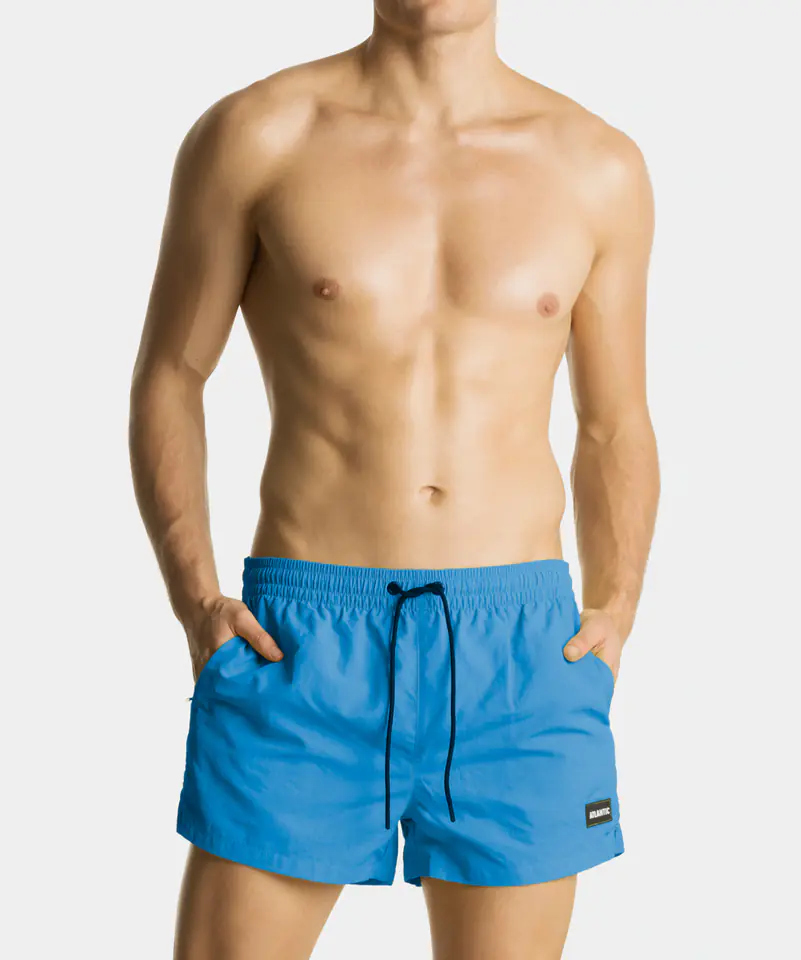 Mini szorty plażowe z krótkimi nogawkami oraz średniej wysokości talią z wiązaniem na sznurek. Wykończone wewnątrz komfortową siatkową podszewką, a boczne kieszenie zapewniają im praktyczność.