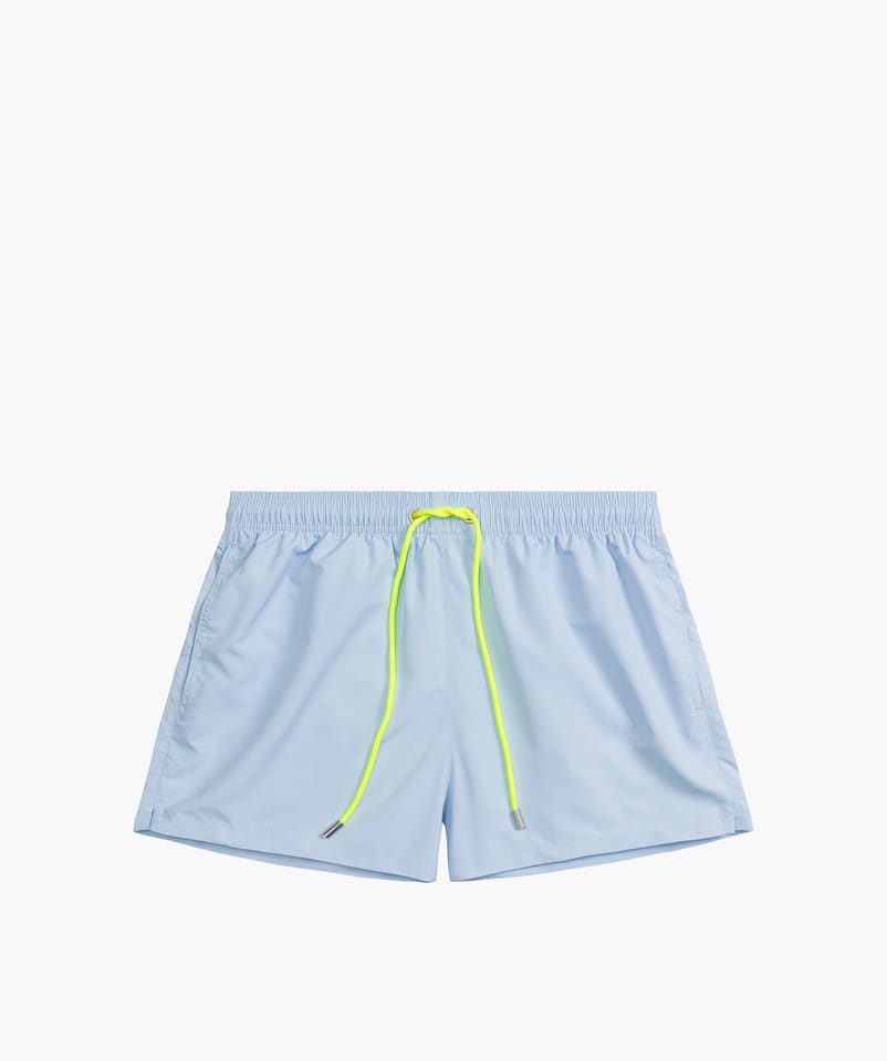 Szorty kąpielowe z krótkimi nogawkami z szybkoschnącego poliestru, który nie odkształca się i nie gniecie. Szorty mają uniwersalnej wysokości stan oraz boczne kieszenie, wiązane na sznurek. Skład:100% poliester.