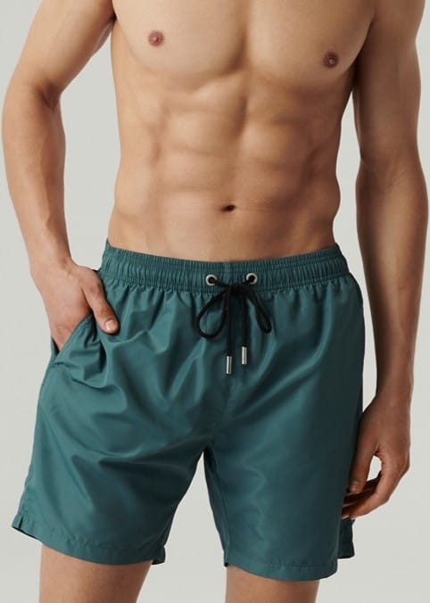 Szorty kąpielowe posiadają uniwersalnej długości nogawki, średniej wysokości stan oraz dwie boczne kieszenie. Wiązane w pasie na sznurek, są świetnym wyborem do każdego typu sylwetki. Szybkoschnące, nie gniotą się i nie odbarwiają. Skład:100% poliester.