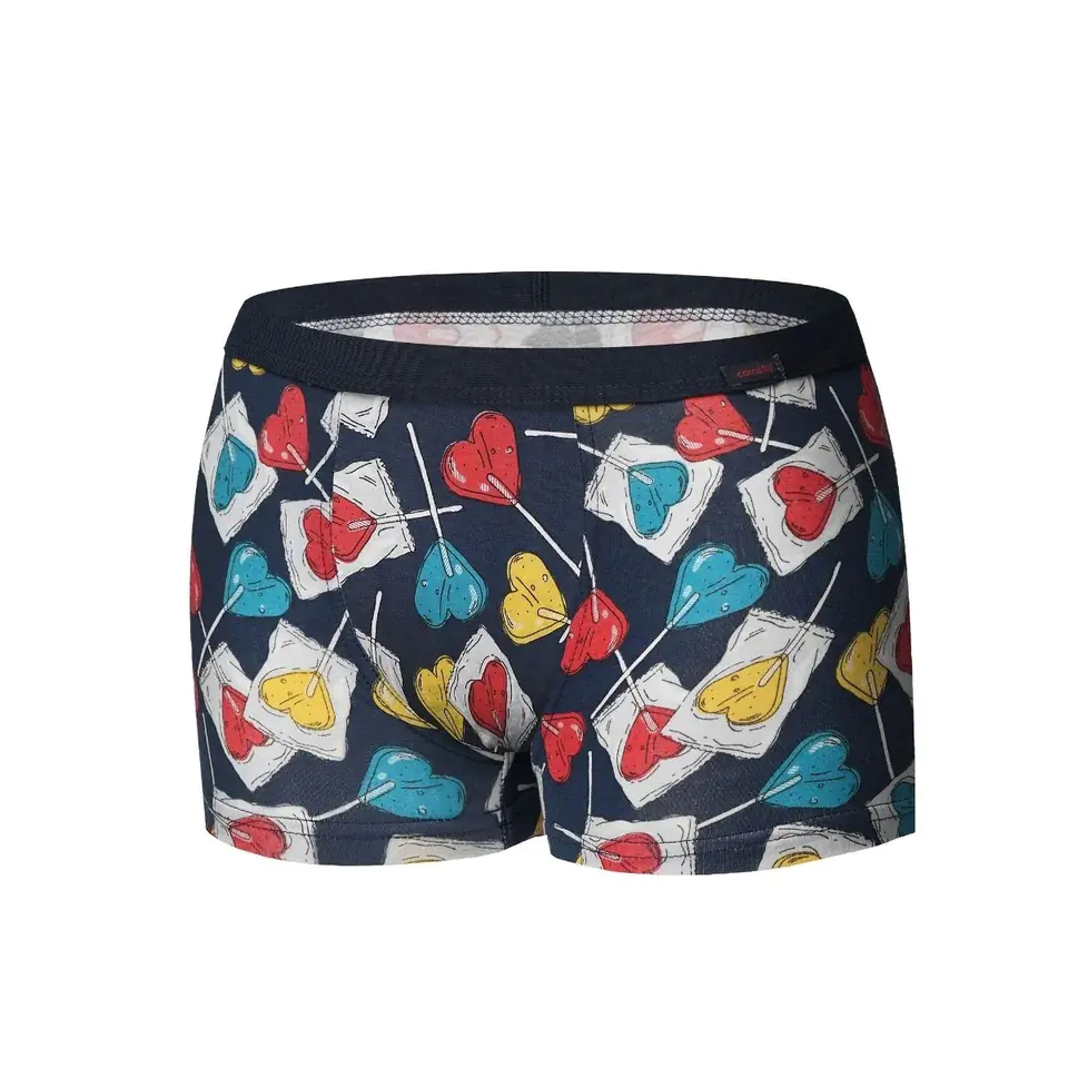 Bokserki zaprojektowane z myślą o nadchodzących Walentynkach, idealnie sprawdzą się jako prezent dla Ukochanego. Obcisłe bokserki męskie z zabawnym wzorem słodkich lizaków zostały wykonane z wysokogatunkowej miękkiej i przyjemnej w dotyku bawełny. Pełną swobodę ruchów zapewnia luźny krój oraz zastosowany materiał. Naturalna, bawełniana dzianina jest niezwykle delikatna dla skóry, miła w dotyku, pozwala skórze swobodnie oddychać. Ciekawy wzór będzie idealną propozycją dla mężczyzn lubiących śmieszną bieliznę męską z ciekawymi nadrukami. Elastyczne bokserki zapewniają pełen komfort dzięki zastosowaniu płaskich szwów, bezuciskowego wykończenia nogawek oraz wygodnej gumy w tunelu, obszytej materiałem delikatnym dla skóry. Wzorzyste bokserki sprawdzą się również jako prezent. Pakowane w estetyczne pudełko.