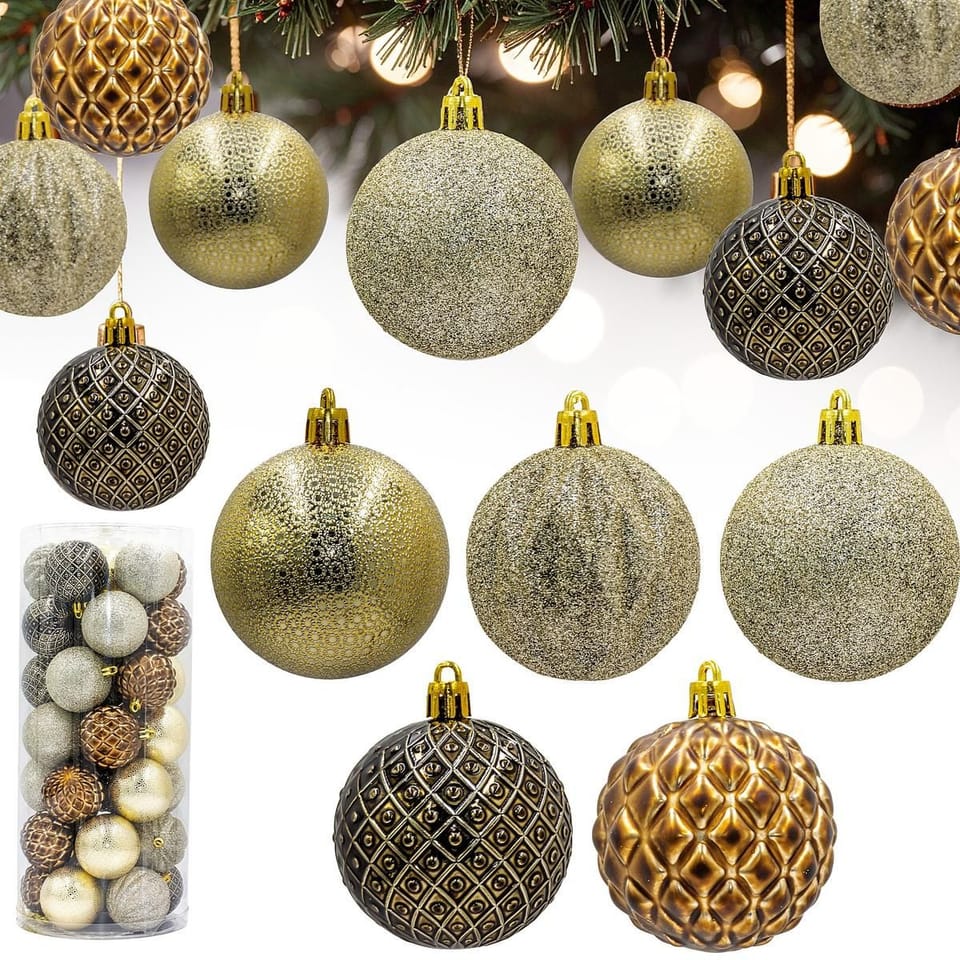 - w zestawie jest aż 35 bombek w różnych fakturachbombki bezpieczne wykonane są z tworzywa sztucznego, nie potłuką sięodpowiedni zarówno na sztuczne jak i na żywe drzewkospakowane w poręczne plastikowe pudełkodo zestawu dodano zawieszki do samodzielnego montażu