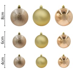 - W zestawie: bombka o średnicy 4cm - 24szt., o średnicy 6cm - 16szt., o średnicy 8cm - 6szt.Materiał: tworzywo sztuczneKolor: copper-miedzianyWymiary opakowania (plastikowe pudeko): 24 x 12 x 27 cm (śr. x wys.)Marka: MicaIlość w zestawie: 46 szt.