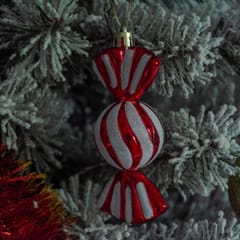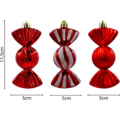 - w komplecie 6 czerwonych bombek w kształcie cukierkówwykonane z tworzywa sztucznego nie potłuką sięlekkie, nie obciążają gałązekodpowiednie zarówno na sztuczne jak i na żywe drzewkodo każdej bombki dodano zawieszkęodpowiednie do dekoracji choinki, okna czy stroików świątecznych