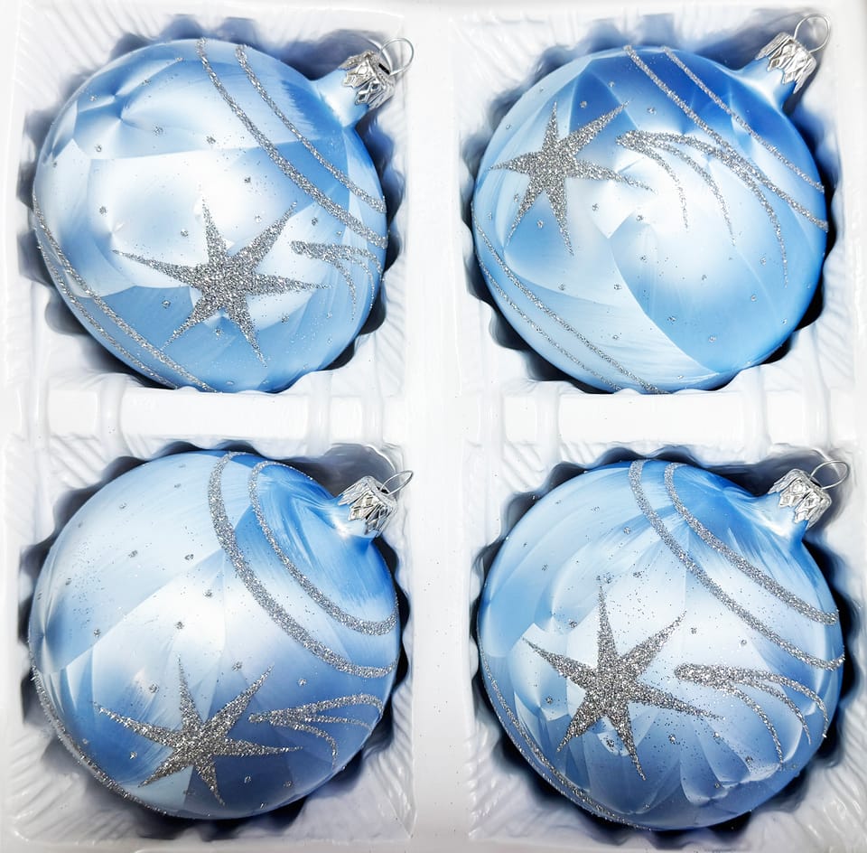 Bombki szklane 10cm 4 sztuki Ręcznie zdobione. Produkt polski błękitny