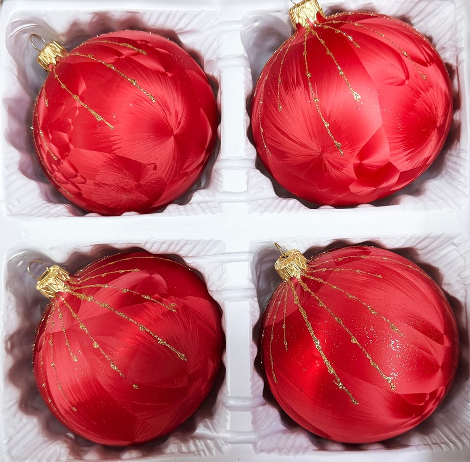 Bombki szklane 10cm 4 sztuki Ręcznie zdobione. Produkt polski czerwony wzór