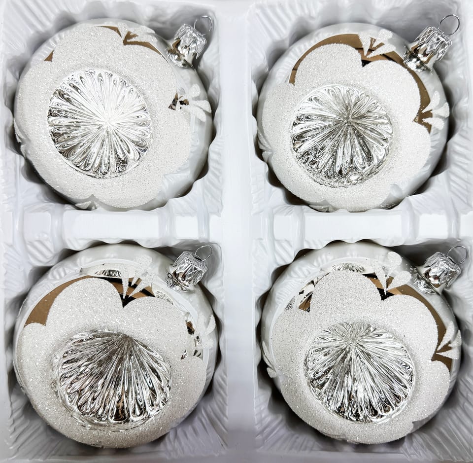 Bombki szklane 10cm reflektor 4 szt Ręcznie zdobione produkt PL biały